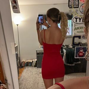 size small, bodycon, brand new, red, smoke free home, never worn, 5’8 and 130 lbs for reference