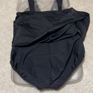 LANDS’ END BLACK ONE PIECE SKIRT SWIMSUIT WITH SOFT CUPS