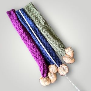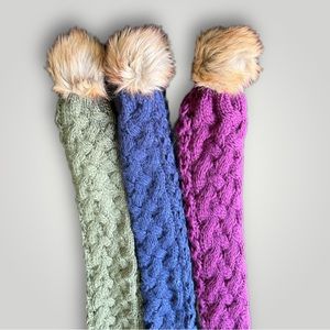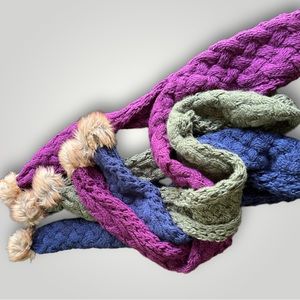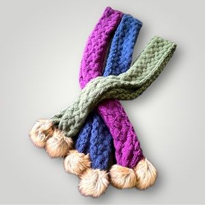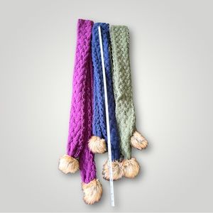 Lot of 3 scarves, never worn and in new condition. Approximately 6 feet long, 100% acrylic, faux fur pom poms. Several bundles available, great time with winter coming. Eager to let them go. Feel free to make an offer!