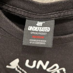 Undefeated T shirt size medium. Play Dirty graphic on front. No print on the back. Used shirt with normal wear and possible shrinkage as it is 100% cotton.