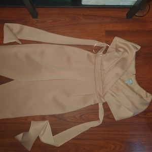ASOS blush fallen shoulder bowtie scuba jumpsuit sz 6