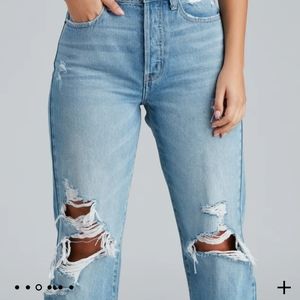 High-Rise Destructed Boyfriend Jeans Sz 9
