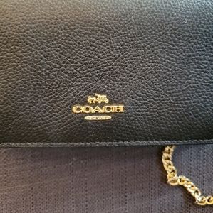 Brand new. Black leather Coach clutch/crossbody/belt bag. Comes with black belt accessory, gold chain strap accessory, original shopping bag, dust bag and receipt envelope.