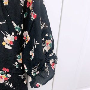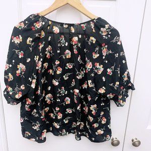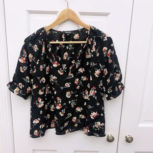 Feminine and just a little bit frilly, this floral short-sleeve top in luxe silk has elastic ruffled cuffs and a notched neckline that can be worn open or as a keyhole. Who doesn't love options?