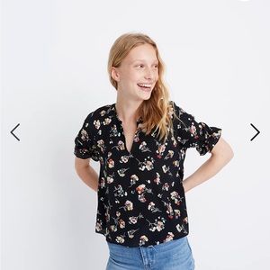 Madewell Silk Notched Ruffle-Cuff Top in Carnation Toss