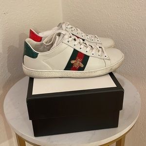 Gucci sneakers with bee, worn ,size 6, comes with box, box is in very good condition