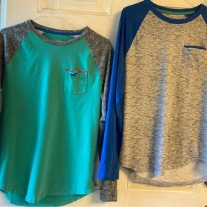 2 Hollister long sleeve tshirts. Size small. Same exact type of shirt just different colors. Both were my sons. He wore them a few times. Both in excellent condition. Lots of life left in both. You see the colors are green blue & the gray static pattern. More pics questions anything. Let me know. I’ve searched hard for anything wrong & I’ve seen nothing so I’m bundling them for a great price.❤️