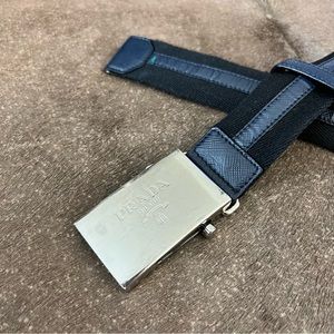 Prada Color Block Saffiano Logo Slide Buckle Belt