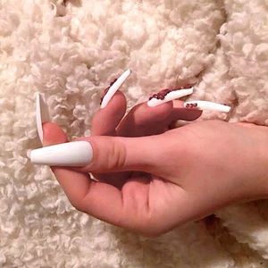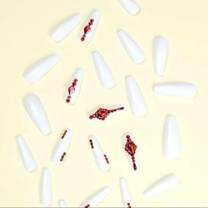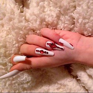 SOLD STUNNING FANCY Red Crystals Design White Press On Nails