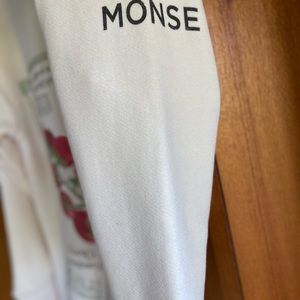 Brand new with tag. There are a few faint spots (pictured on back of garment) but they appear to be threading and not actually damaged/dirty