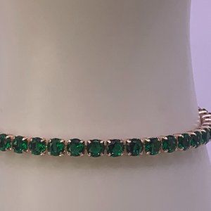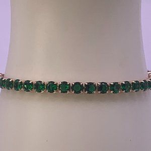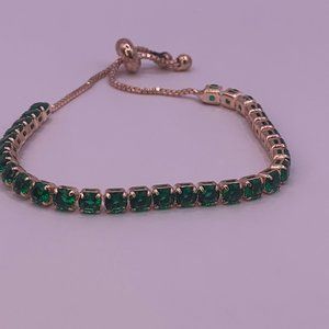 18 K Rose Gold Plated Tennis Bracelet Round 4mm Green Cubic Zirconia