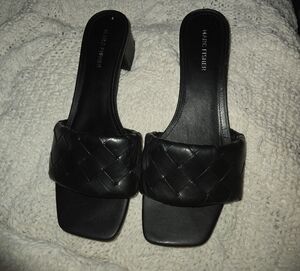 These have a tan color wood heel 5 inch with a 1.5 inch platform front . They have a studded design along the edges. They have a faux fur design in front of the ankles. Accepting fair offers. I ❤️ offers