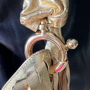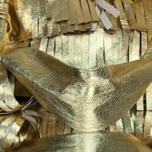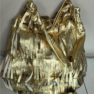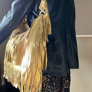 GOLDENBLEU Gold Genuine Leather Fringe Handbag