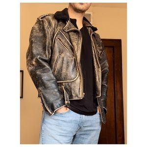 Made in the 1980’s, this retro California 2BU leather motorcycle jacket is the perfect blend of classic biker style and functionality.