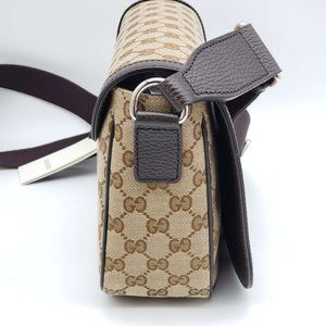 100% Authentic Gucci GG Canvas Leather Brown Messenger Shoulder Bag