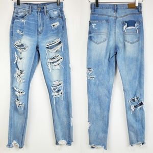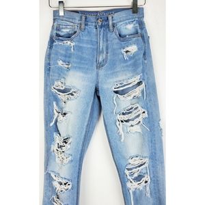 American eagle outfitters size 00 distressed high rise mom jeans light blue