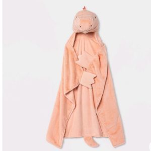 •Kids dinosaur hooded blanket in light pink