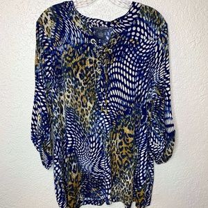 Floral v-neck front tie dressy Como Vintage top. Multi-colored floral top that goes from the office to movie night with ease. This short sleeve top is perfect for any occasion and so comfortable to wear. The v-neck and front tie detail offers a standout look that is very flattering. Excellent Used Condition.
