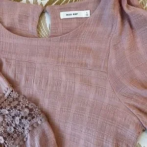 Casual lilac dress with lace detail on the sleeve. Never been worn. From Piper and Scoot Boutique