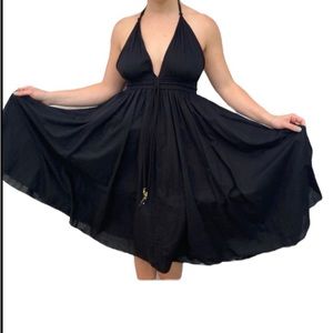 Lapis Boho Black Halter Flowy midi dress