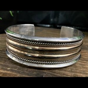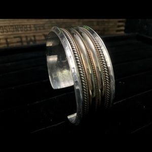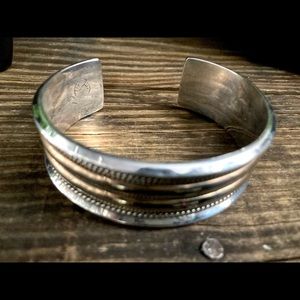 Vintage Signed Heavy Navajo Native American Twisted Rope Cuff Bracelet 7"