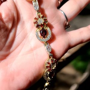 STUNNING ruby, garnet & white Topaz sterling & gold bracelet
