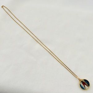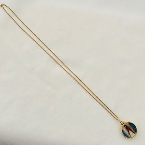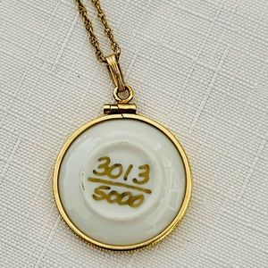 Miniature Porcelain disc encased in gold with a 14K gold filled chain.