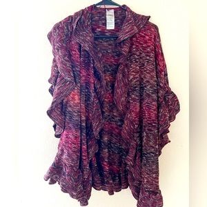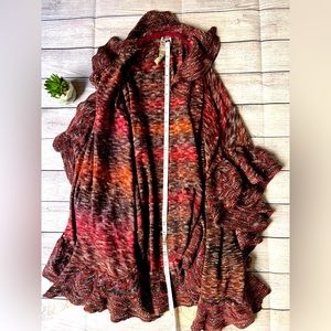 CHICO’s burnout butterfly ruffle cardigan Sweater. Oversize and comfy fit. The sweater is marled knit And has unique a burnout appearance.