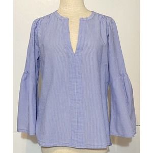 ANN TAYLOR Misses. S Cotton Lyocel Blouse Blue White Stripes