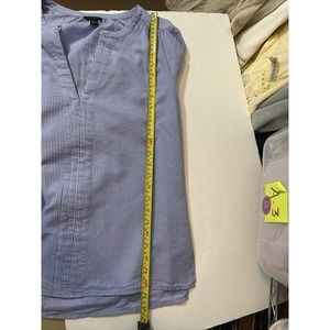 ANN TAYLOR Misses. S Cotton Lyocel Blouse Blue White Stripes.