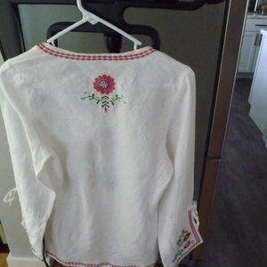 WILLI SMITH TRENDY BOHEMIAN HIPPIE PEASANT LINEN BLOUSE WITH EMBROIDERY SIZE M