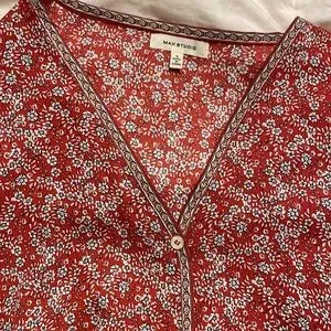 Max Studio - Red, White, & Black Floral Design Blouse - 1/2 Sleeve - Small