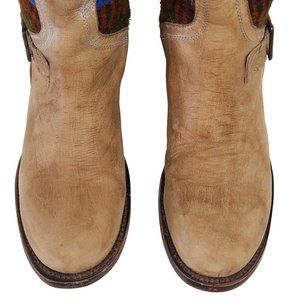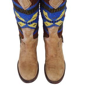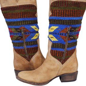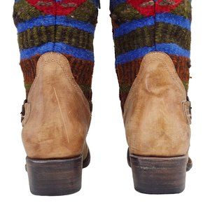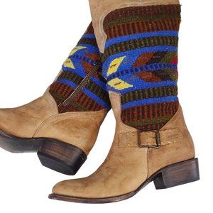 FREEBIRD BY STEVEN QUIXOTE TAN LEATHER WOOL BLANKET SOUTHWEST AZTEC BOOT QXOTE