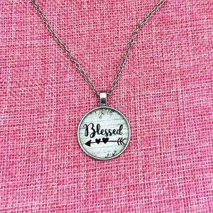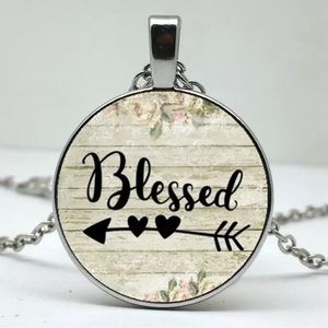New Blessed Pendant necklace on link chain measures 22 inches zinc alloy lead and allergy free comes with sheer drawstring pouch for gift giving appearance