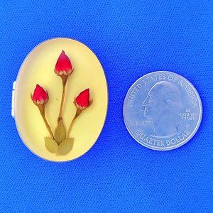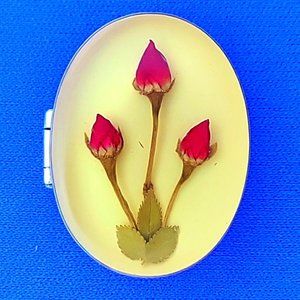 Sterling 925 Silver Box with 3 Real Miniature Rosebuds