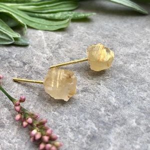 π New Raw Rutile Quartz Crystal Stud Gemstone Earrings