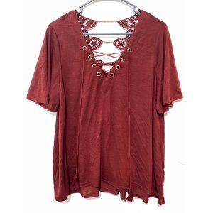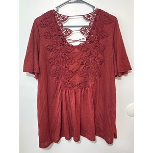 Excellent condition. Fits true to size. Lace up detail on the front, crochet detail on the back.