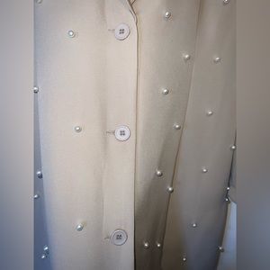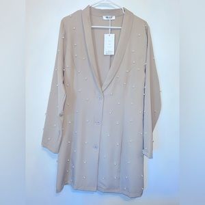 NWT! Saint Genies Pearl Studded Tan Boyfriend Blazer - Embellished