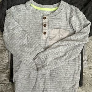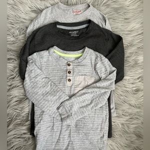 Light grey tee is cat and Jack size 6/7, charcoal grey is by architect size 6, and pocket top is carters size 6. All good condition just wrinkled