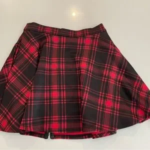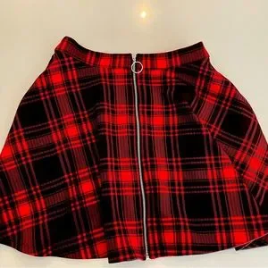 Hot Topic Small red and black plaid skirt with zipper front and pockets!