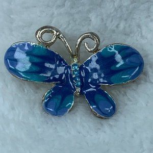 Silver & Shade of Blue Enameled Butterfly Pin Brooch Jewelry Rhinestone Accents.