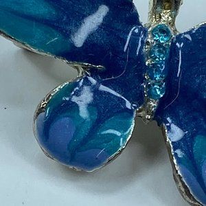 Silver & Shade of Blue Enameled Butterfly Pin Brooch Jewelry Rhinestone Accents
