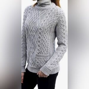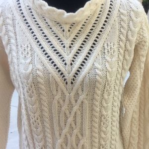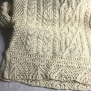 Irish store Aran merino wool long pullover detailed collar by founder Lulu The Irish store founder. Laid flat measures 29” pit to pit 21”