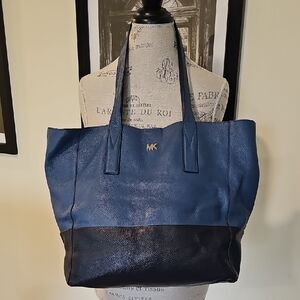 A beautiful color block dress with faux leather trim.