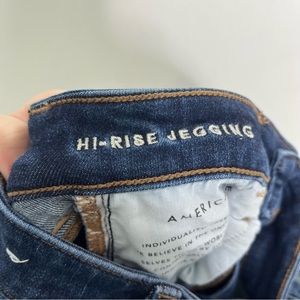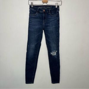 American Eagle Hi-Rise Jeggings in Dark Wash Distressed Size 0