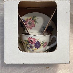 Happy January birthday! Happy January anniversary! Just Happy January!!! This super cute miniature tea cup and saucer with beautiful painted flowers and “January” displayed would be a wonderful gift for that special January person in your life! Brand new in box. Only removed for these pictures. Teacup 1 1/2” tall, 2” wide. Saucer 3” wide.