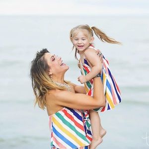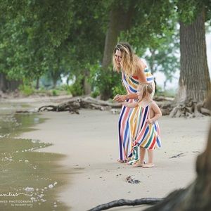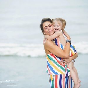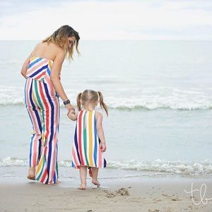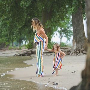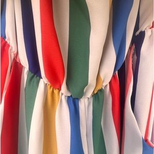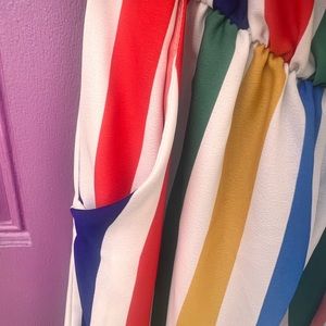 Vici carosel striped pocketed jumpsuit size small md medium availablez wore for photo shoot with my little girl. Very whimsical and cute. Flowy fabric and elastic waist.