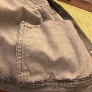 Classic Grey denim jacket barely worn. . 4 small pockets on the front and 2 deep pockets on the inside. Machine wash