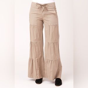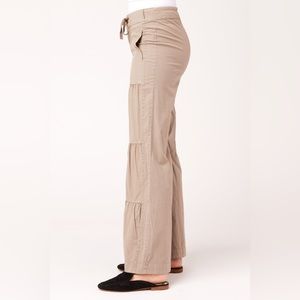 It's back by popular demand: our signature terraced ruched wide leg pant, with a flat drawstring waist, back elastic, zip fly and side seam pockets.