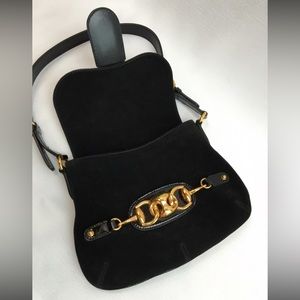 GUCCI Suede Black Handbag with Black Patent Leather Shoulder Strap